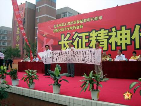 万人师生和开国元勋子女见面活动现场。活动结束后,阮强明与开国元勋子女告别继续前进。